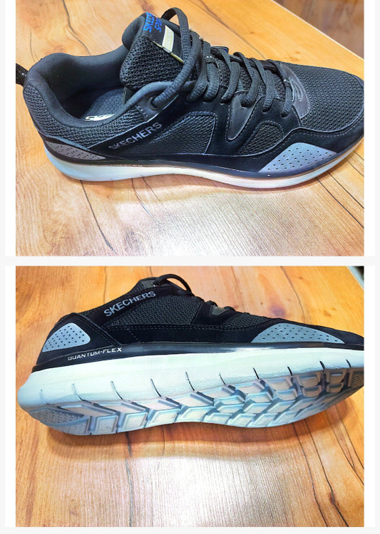 این کفش یک مدل اسکچر کوانتوم فلکس بارویه مصنوعی وطراحی مشبک یا meshبازیره انعطاف پذیر وقابل شستشو در ماشین لباسشویی است که در سایزهای 44-48موجود است ،زیره انعطاف
